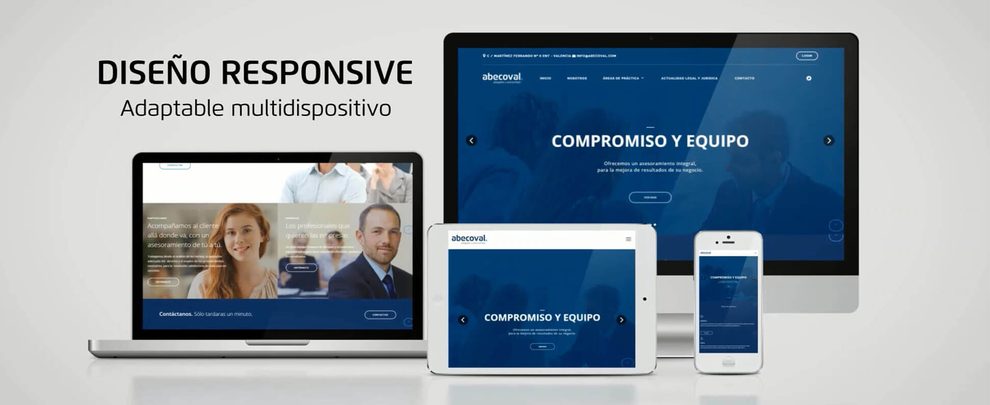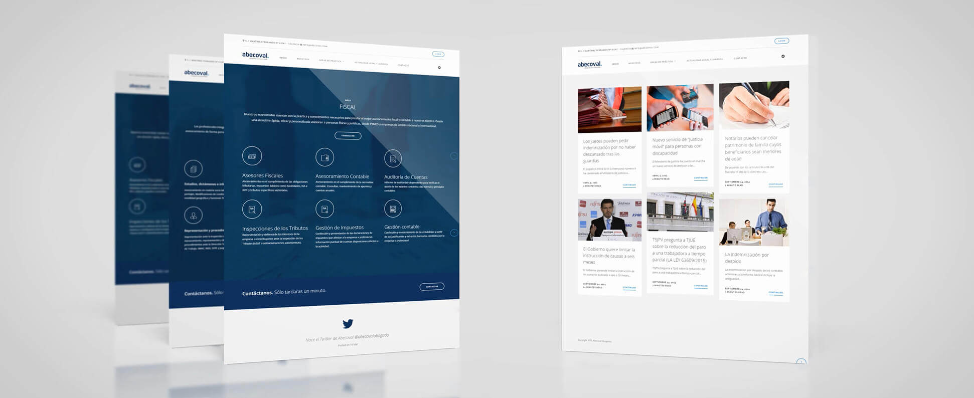 Rediseño integral de la imagen corporativa y la página web del despacho Abecoval Abogados. Página web resposive design con adaptabilidad multidispositivo.