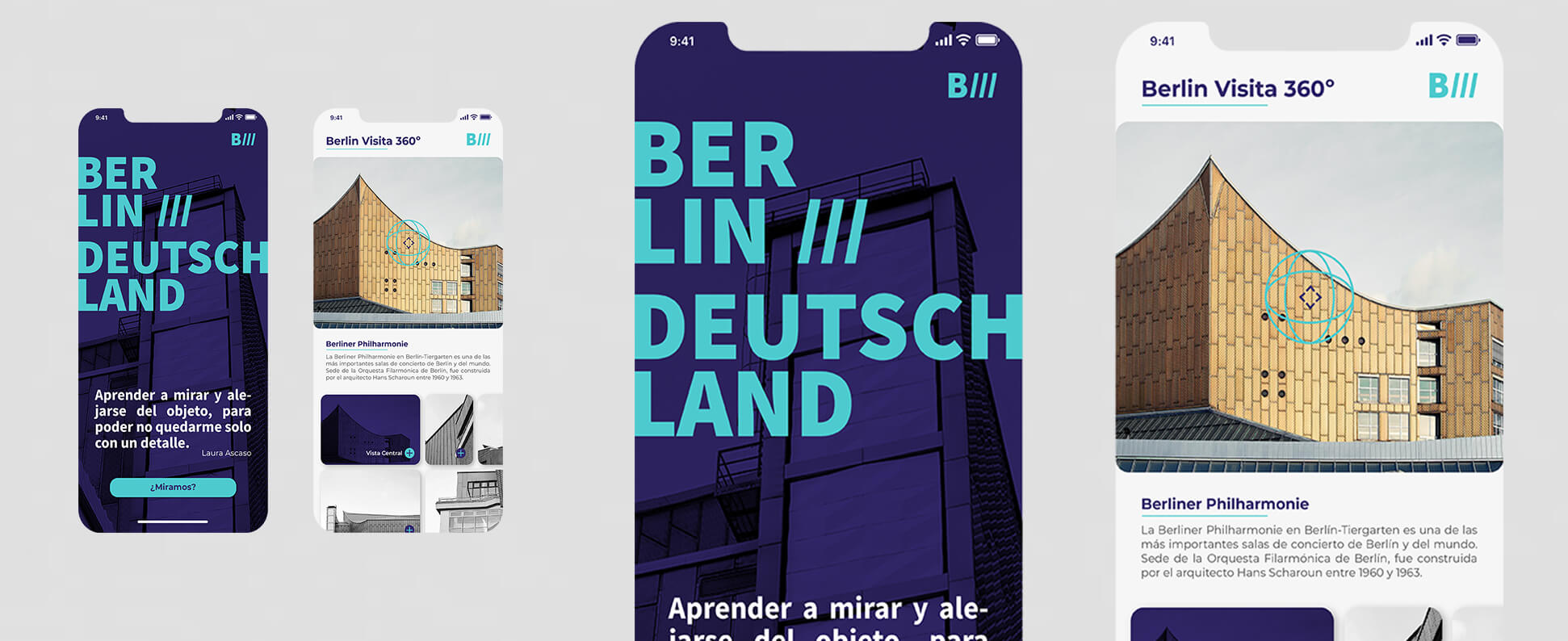 Diseño de la interface y creación de contenido para la aplicación móvil Berlin360. Visita guiada 360 grados por los edificios más emblemáticos de Berlín. Fotografía de Laura Ascaso