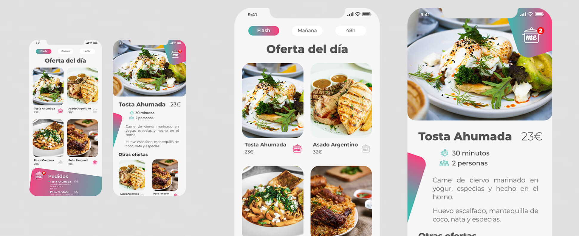 Diseño de la interface y creación de contenido para la aplicación móvil Cook Me App, de comida a domicilio.